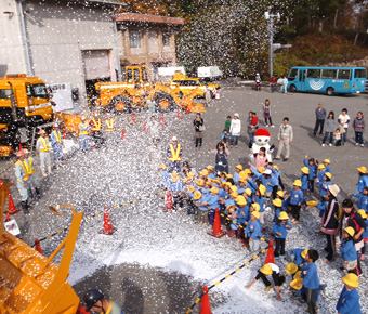 毎年11月に開かれる除雪出発式と機械展示会には、地元の保育園児を招待しています。