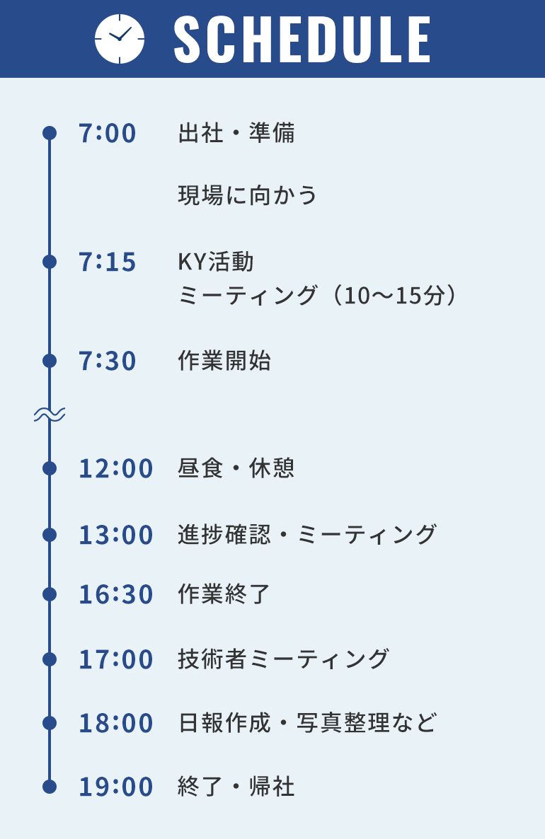 現場は5〜10名程度の規模で、弊社スタッフのほかに協力業者の方も一緒に働きます。