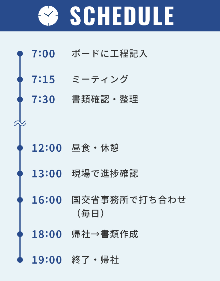 また、毎日国交省の事務所に出向いて、進捗報告や計画の打合せがあるので、今は後継者を育てる事が急務で、それが目標でもあります。